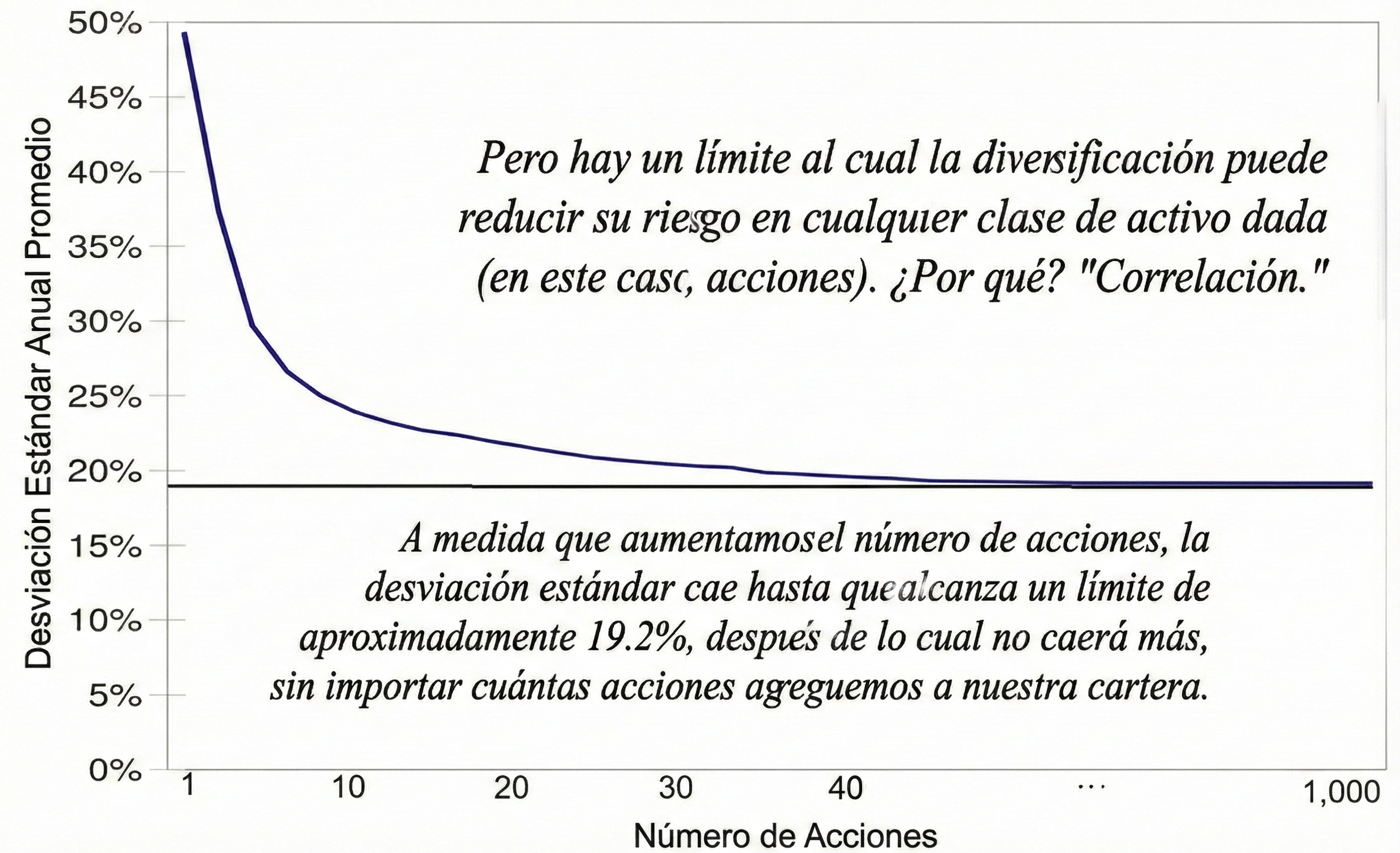 La evidencia empírica muestra que a partir de 20-25 posiciones bien seleccionadas, el beneficio adicional de seguir añadiendo activos es mínimo. Lo que sí se añade es complejidad, dificultad para hacer seguimiento y, a menudo, rentabilidades mediocres.