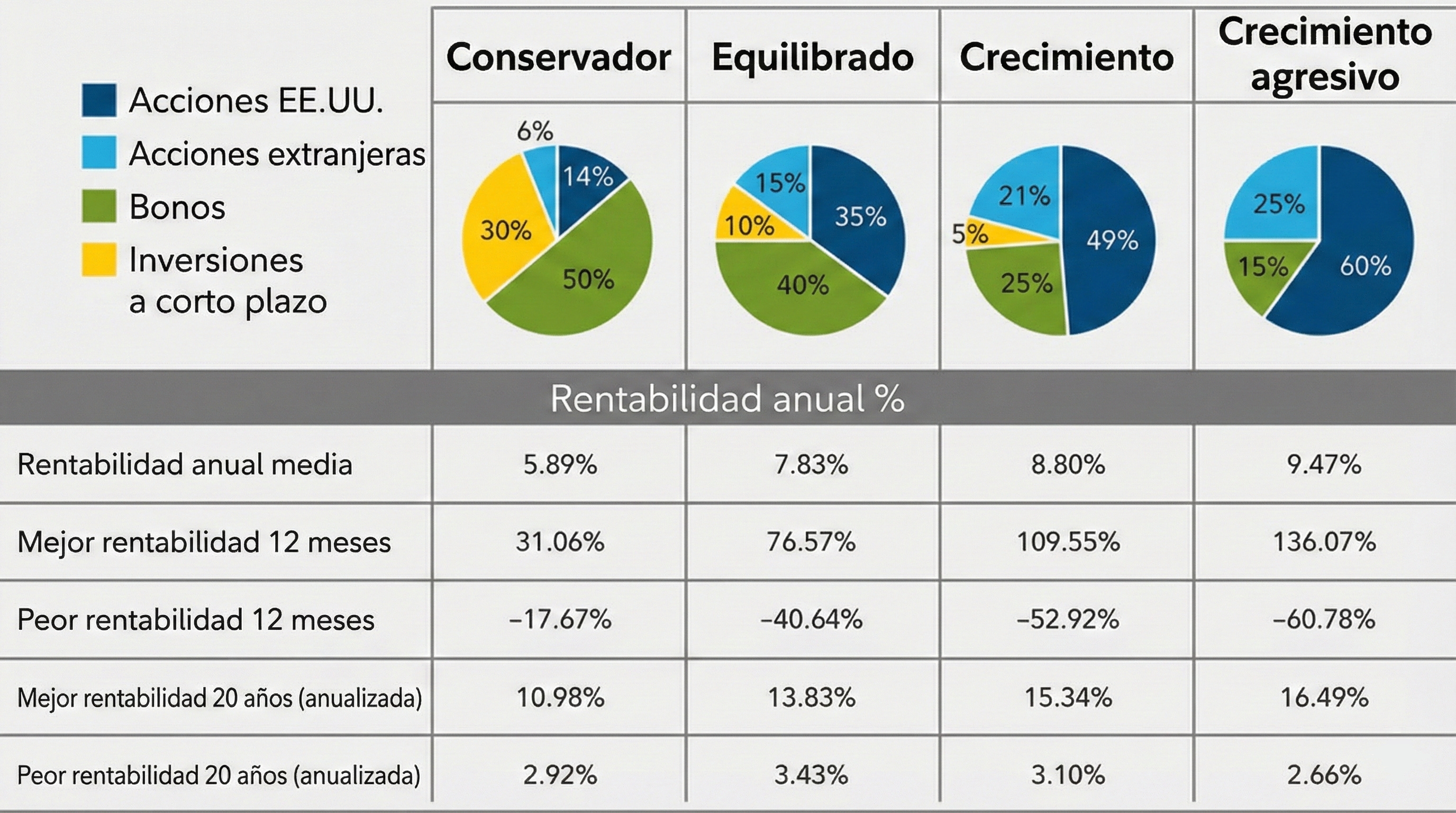 Conclusión clave: Si no puedes tolerar que tu cartera baje un 30-40% temporalmente, las acciones no son para ti. Ajusta tu estrategia a tu perfil psicológico real, no al ideal.