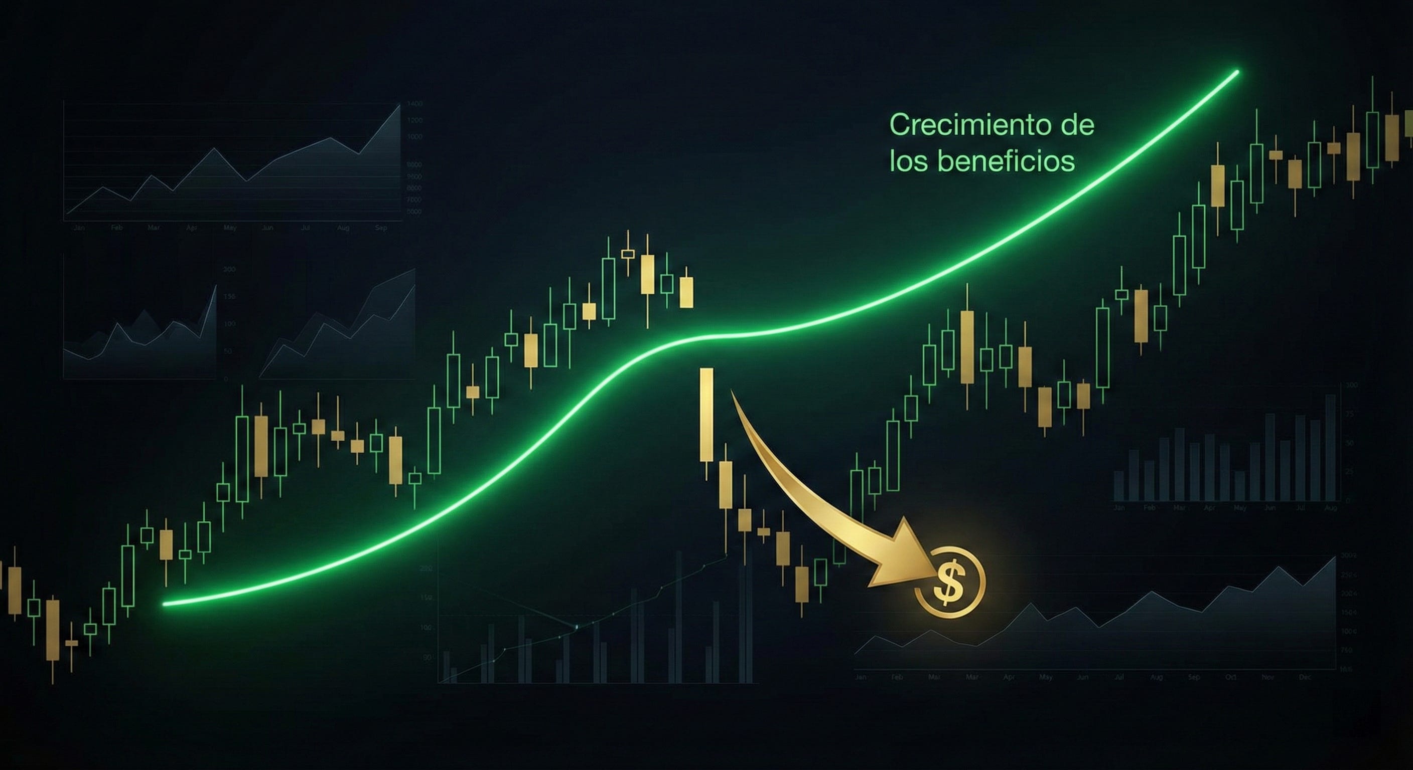 A medida que esa caja se acumula, el valor intrínseco de la empresa aumenta. El mercado, consciente de que la empresa tiene cada vez más efectivo (o activos comprados con ese efectivo), va “inflando” la cotización gradualmente a lo largo del año.