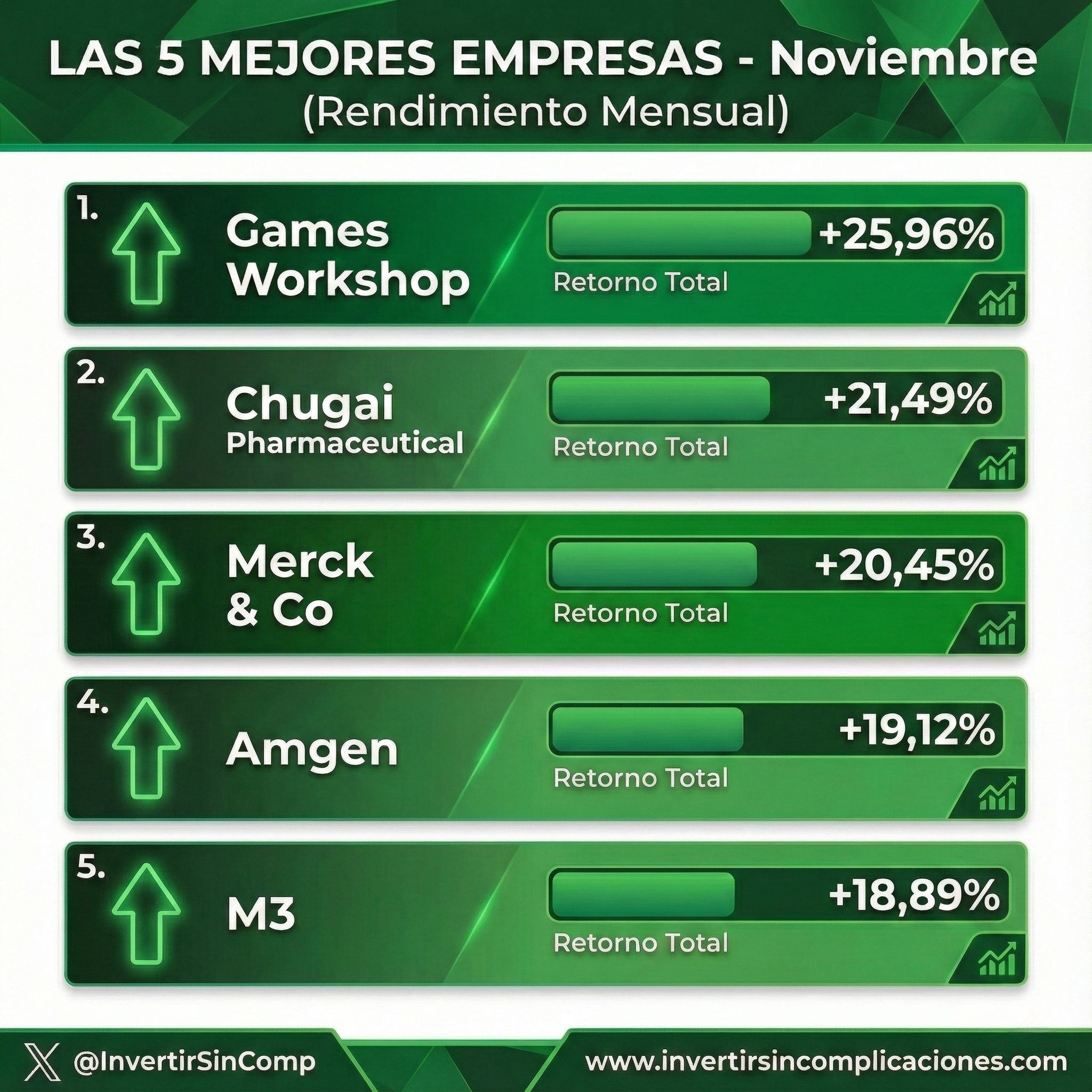 A continuación vamos a ver qué empresas lo han hecho mejor y cuales lo han hecho peor en noviembre.