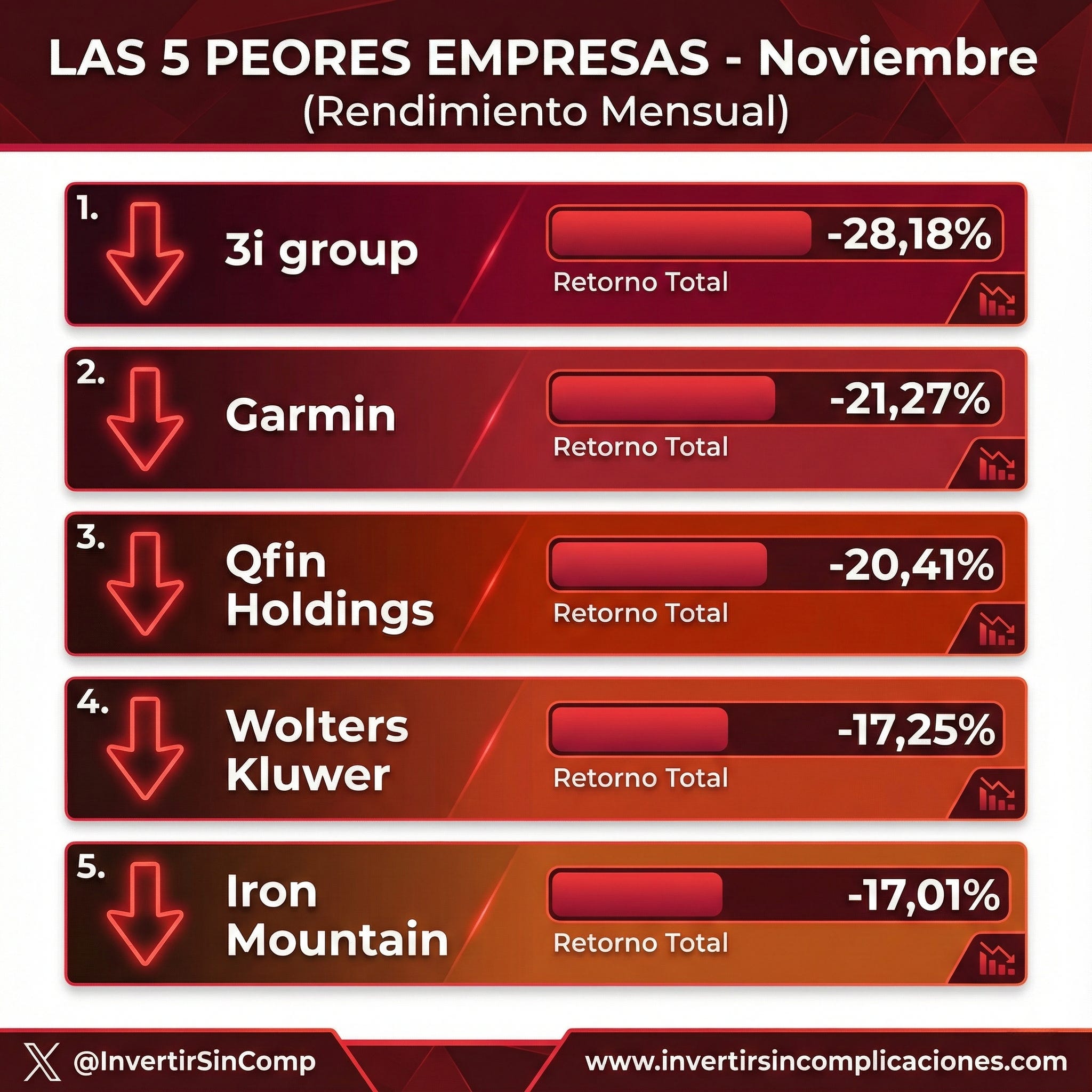 Estas son las empresas de mi lista de seguimiento que peor lo han hecho en noviembre: