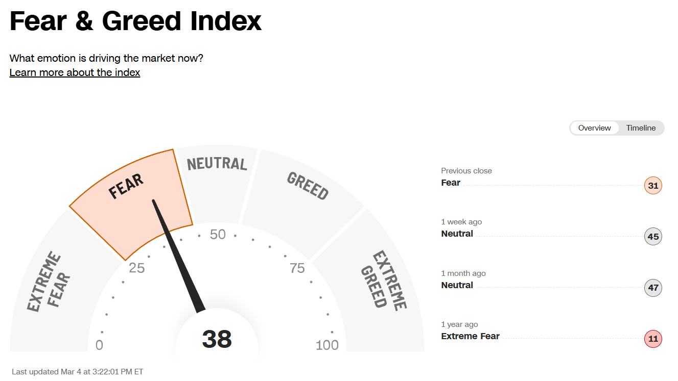El índice de CNN se sitúa hoy en un valor de 39, clasificándose firmemente en la zona de ‘Fear’ (Miedo).