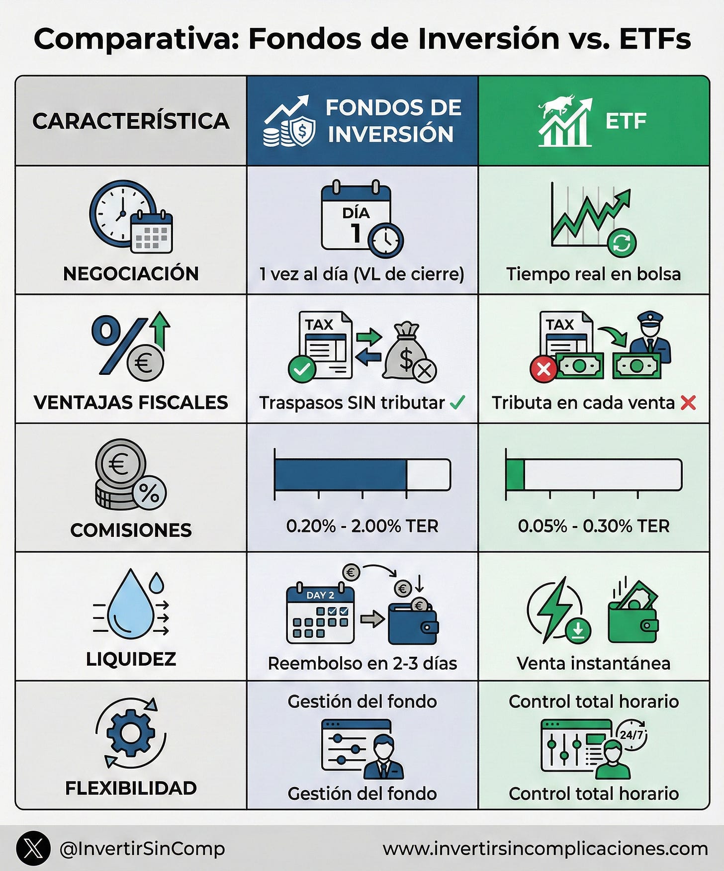 Diferencias fundamentales entre Fondos de Inversión y ETF